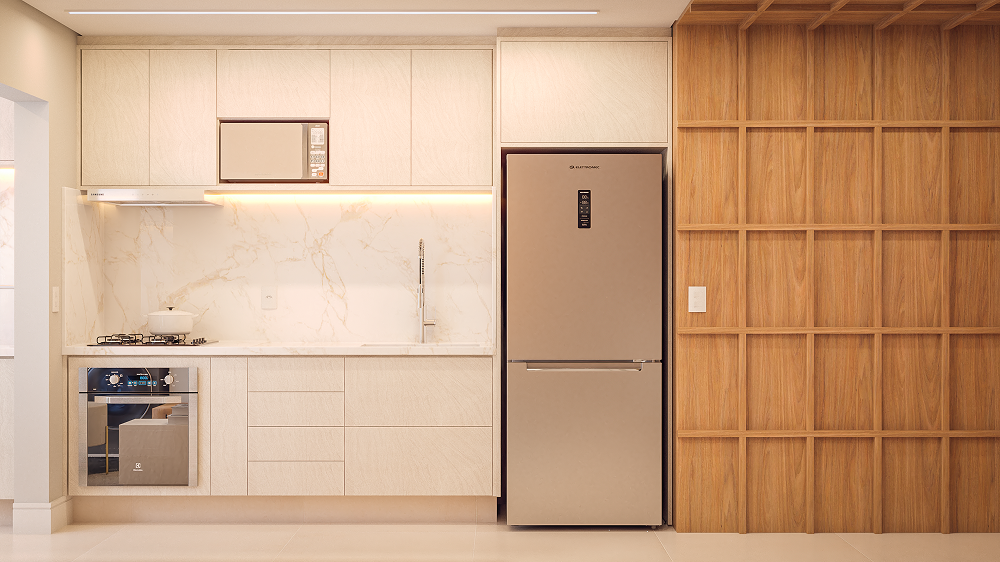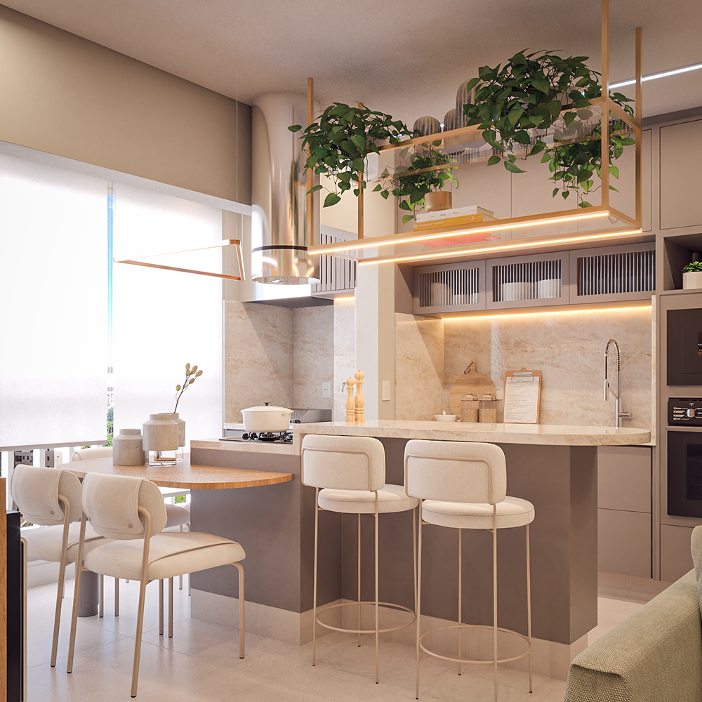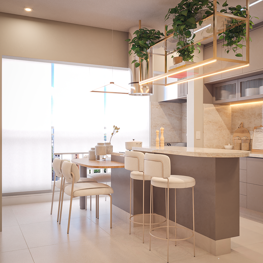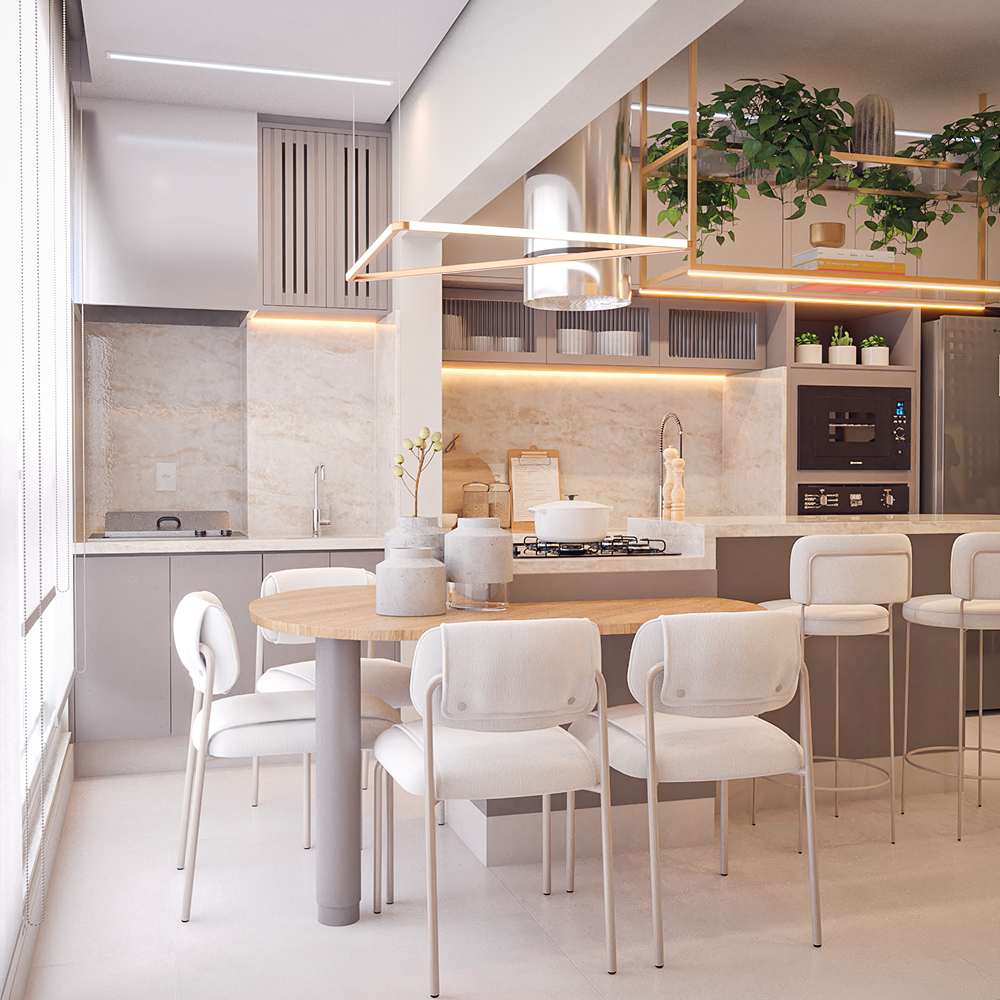 Sala de Estar, Jantar e Cozinha conjugados / Suíte / Dormitório / WC Varanda Grill com infra para churrasqueira elétrica /