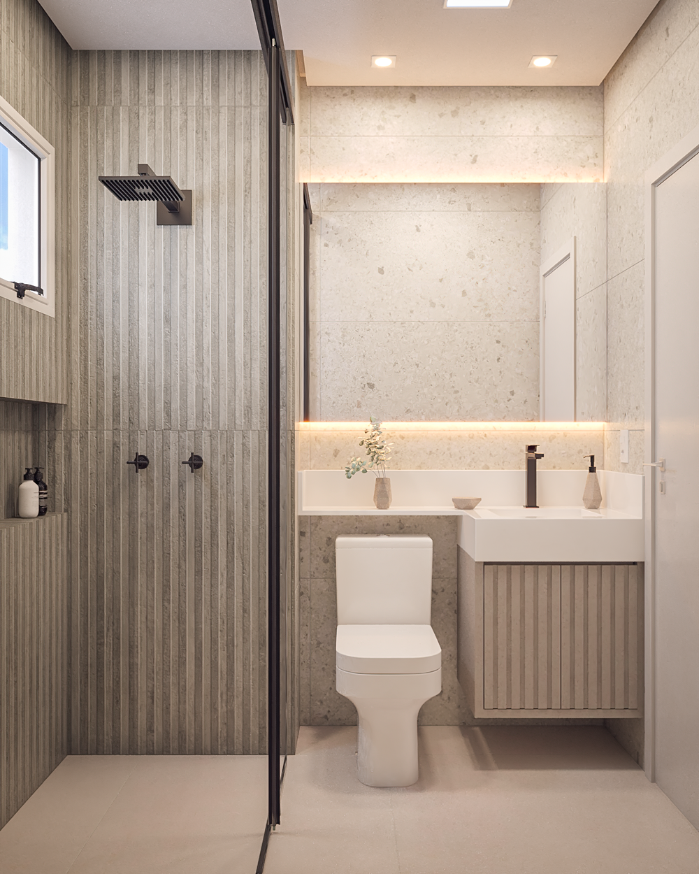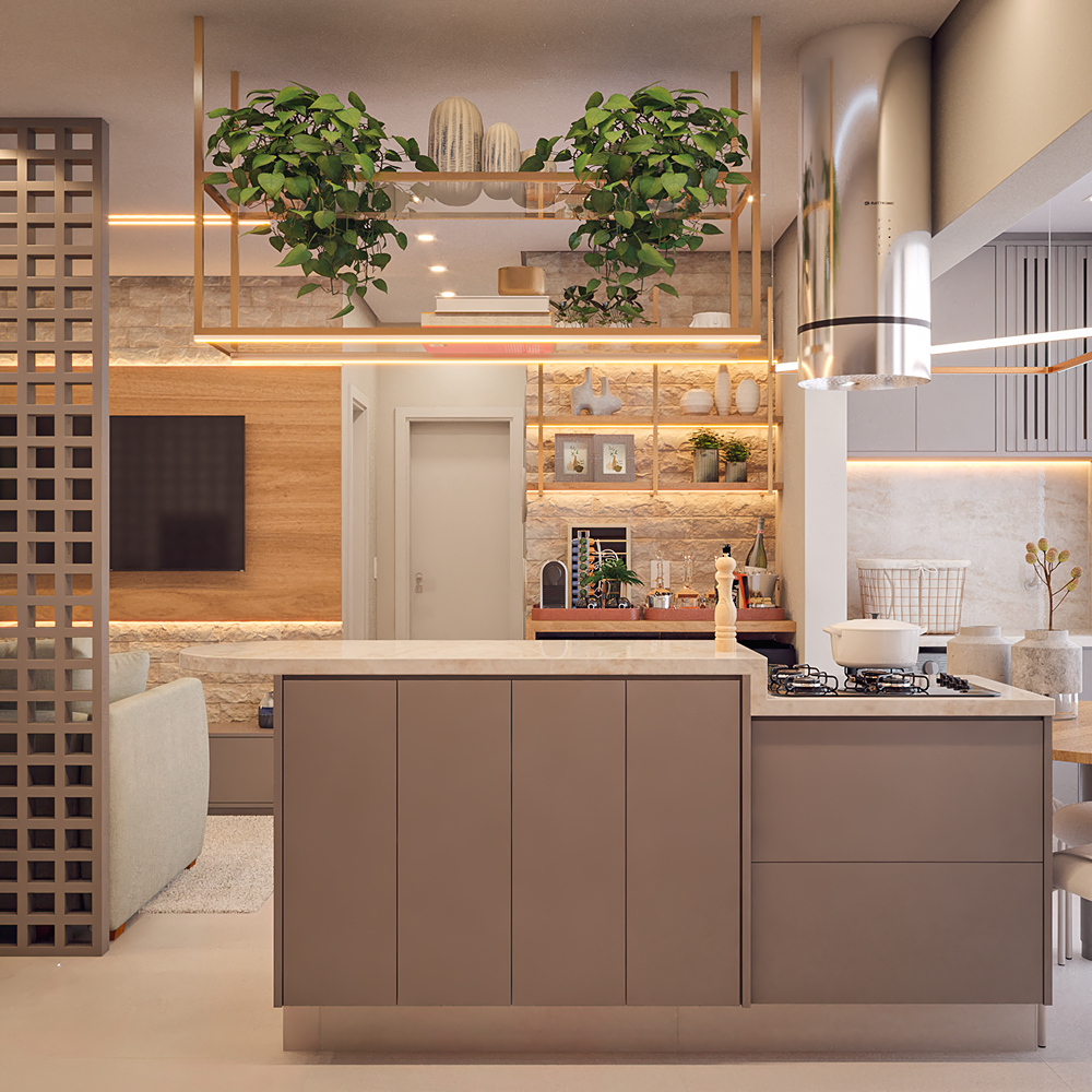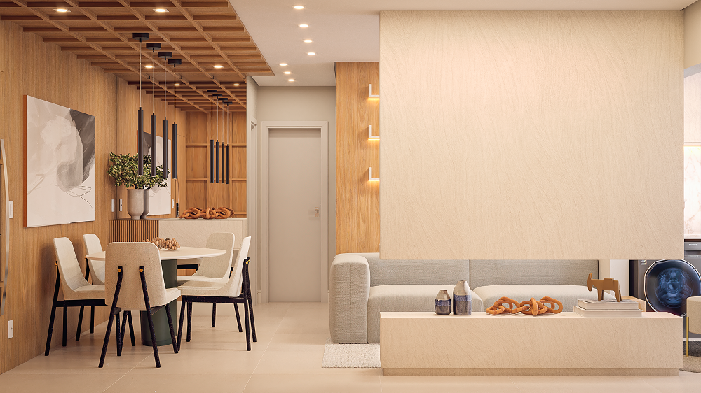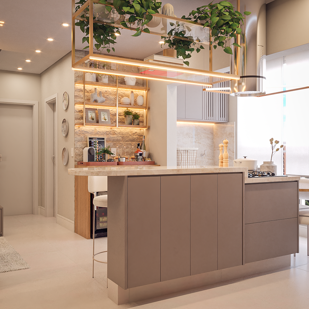 Sala de Estar, Jantar e Cozinha conjugados / Suíte / Dormitório / WC Varanda Grill com infra para churrasqueira elétrica /