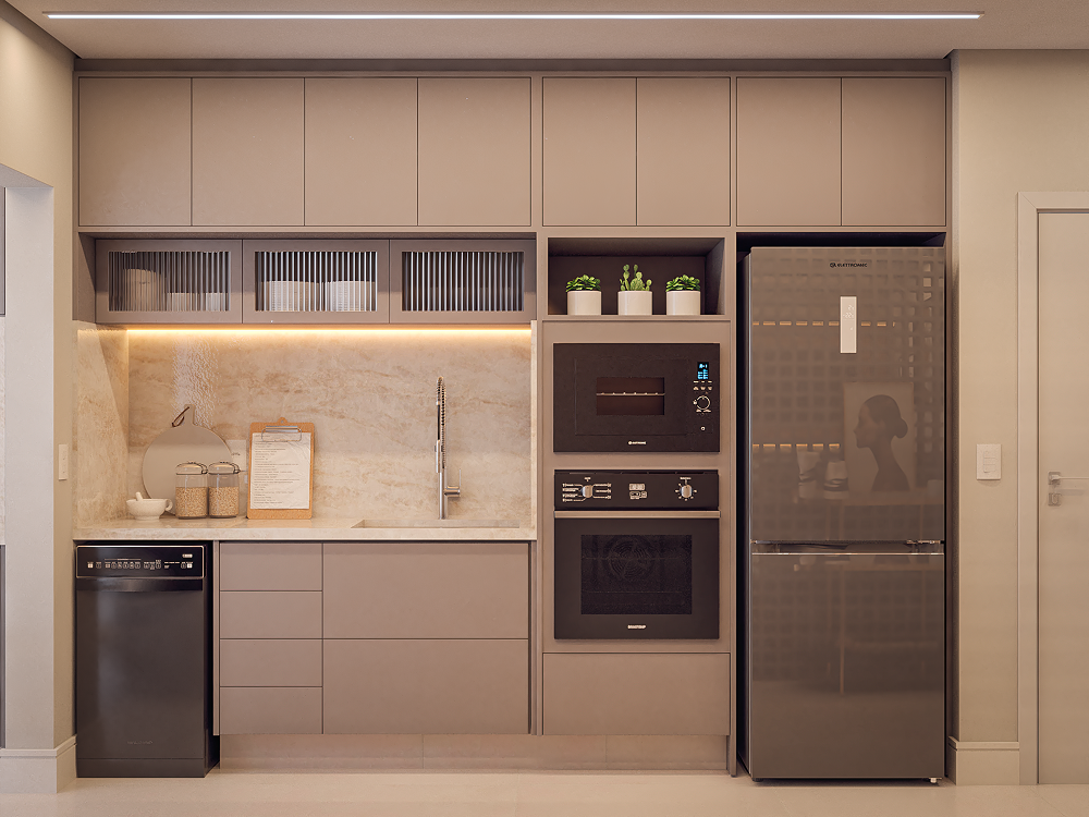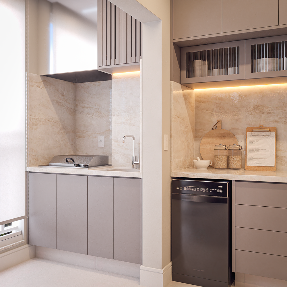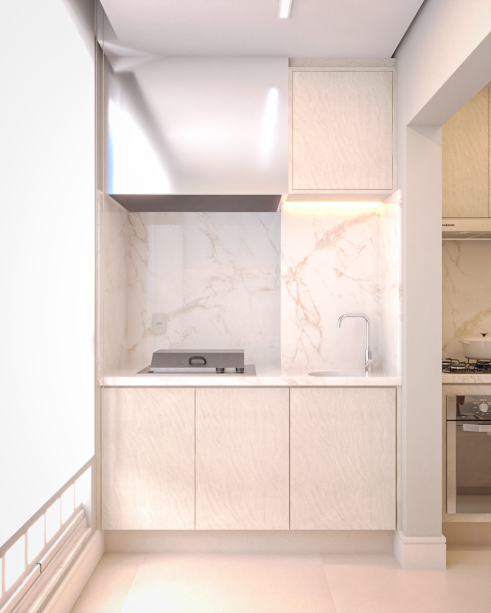 • Varanda Gourmet com infra para churrasqueira elétrica